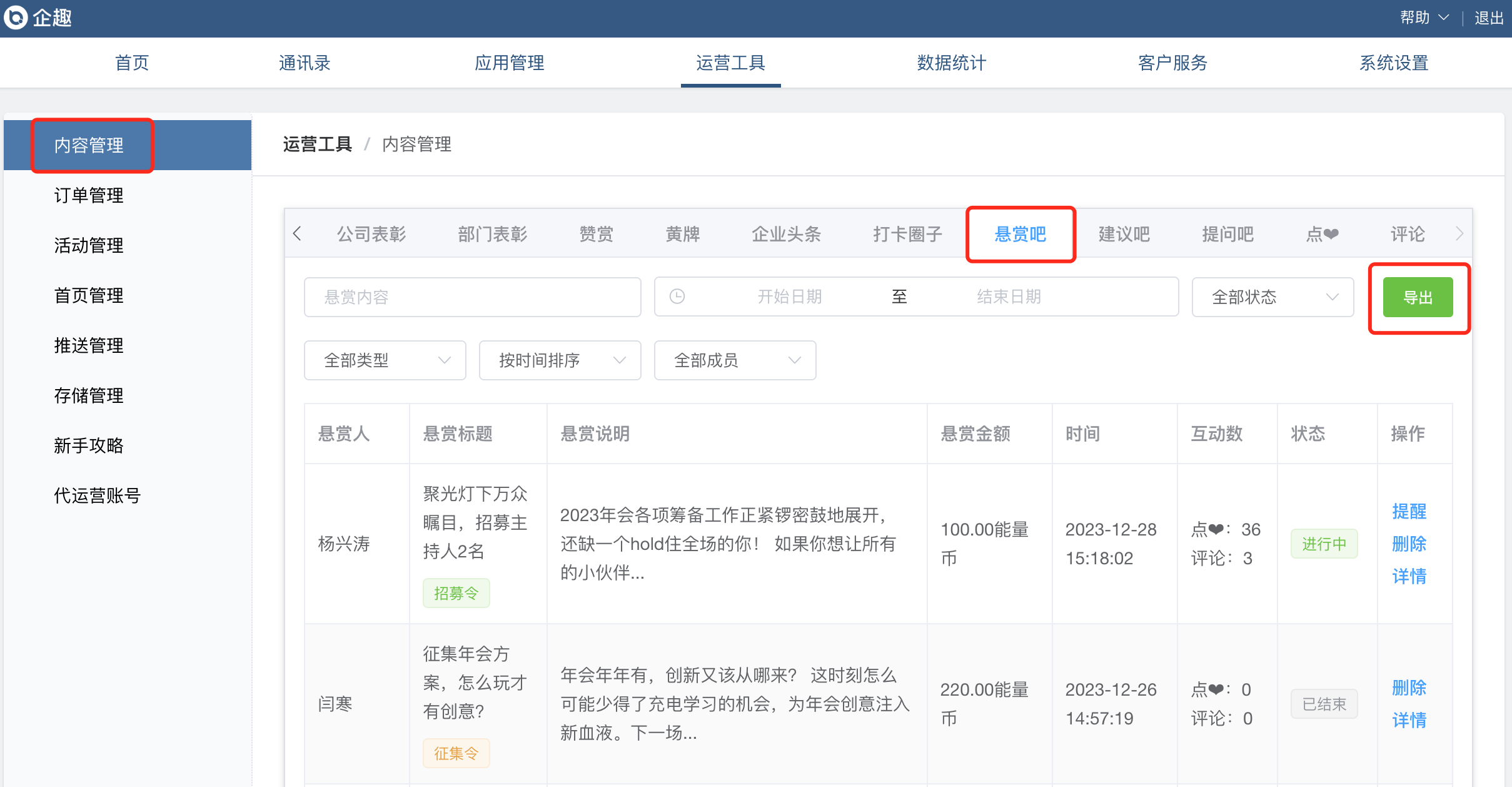 ⑥悬赏吧增加导出功能;