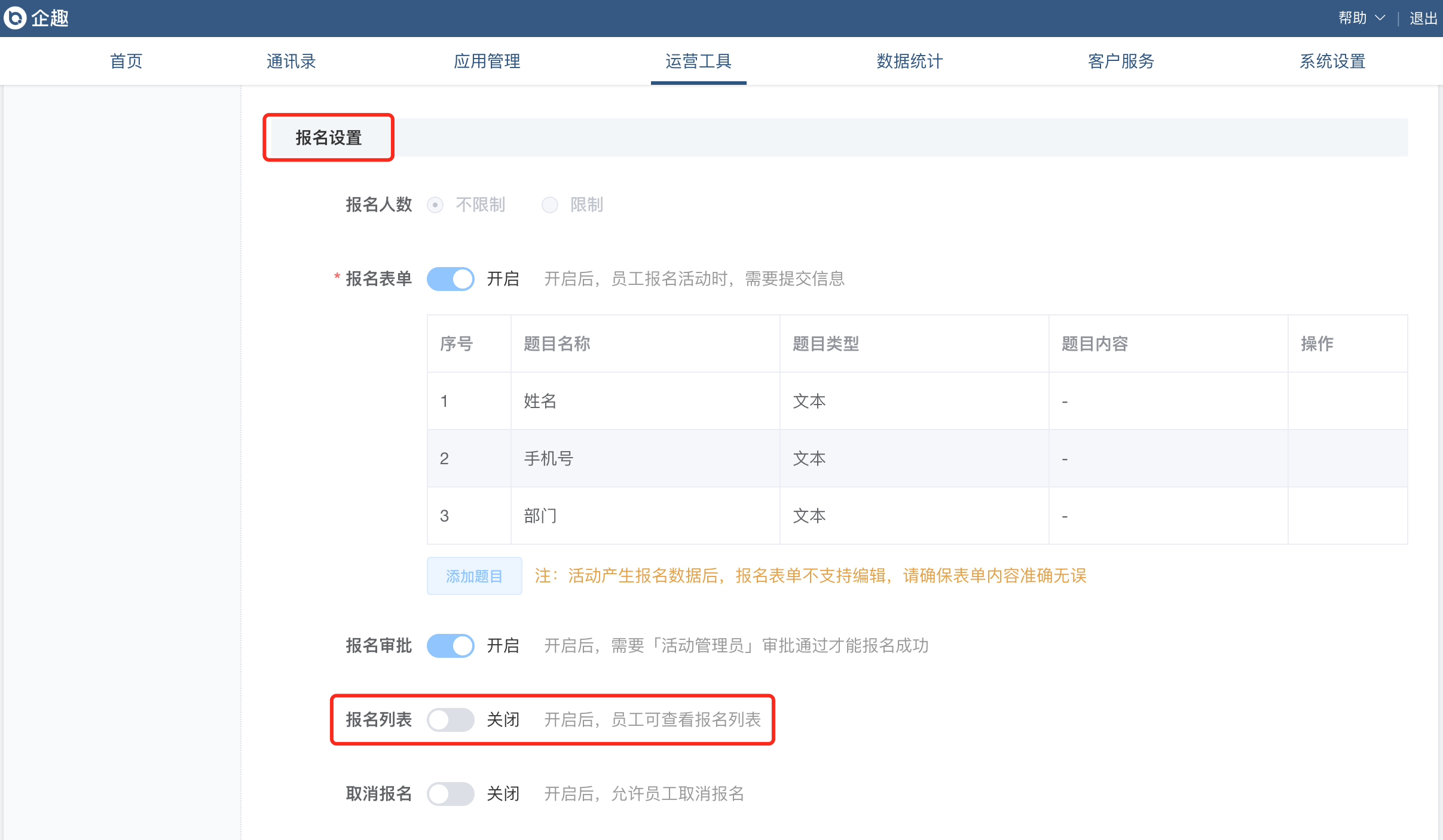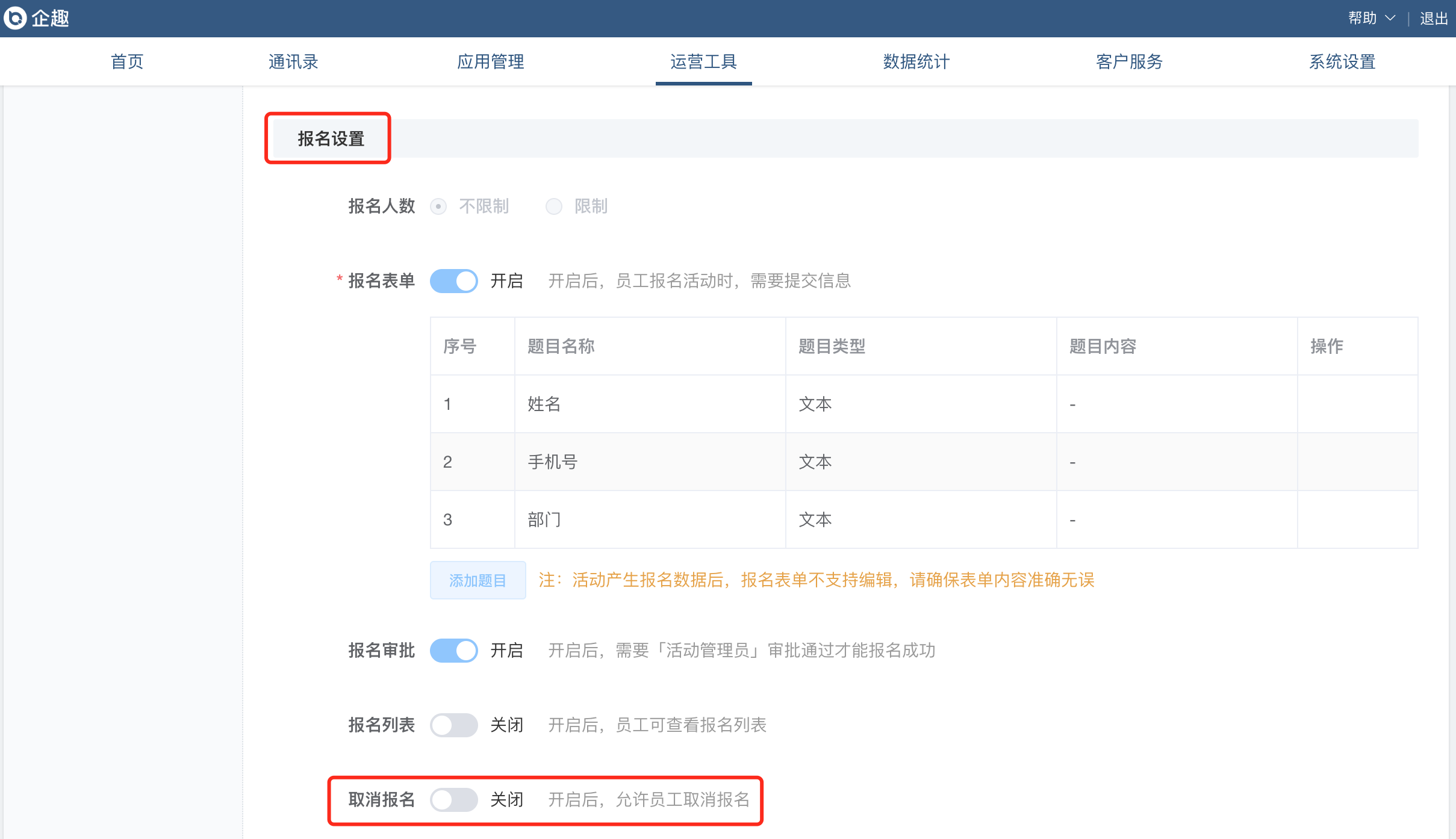 ②活动吧增加取消报名配置;