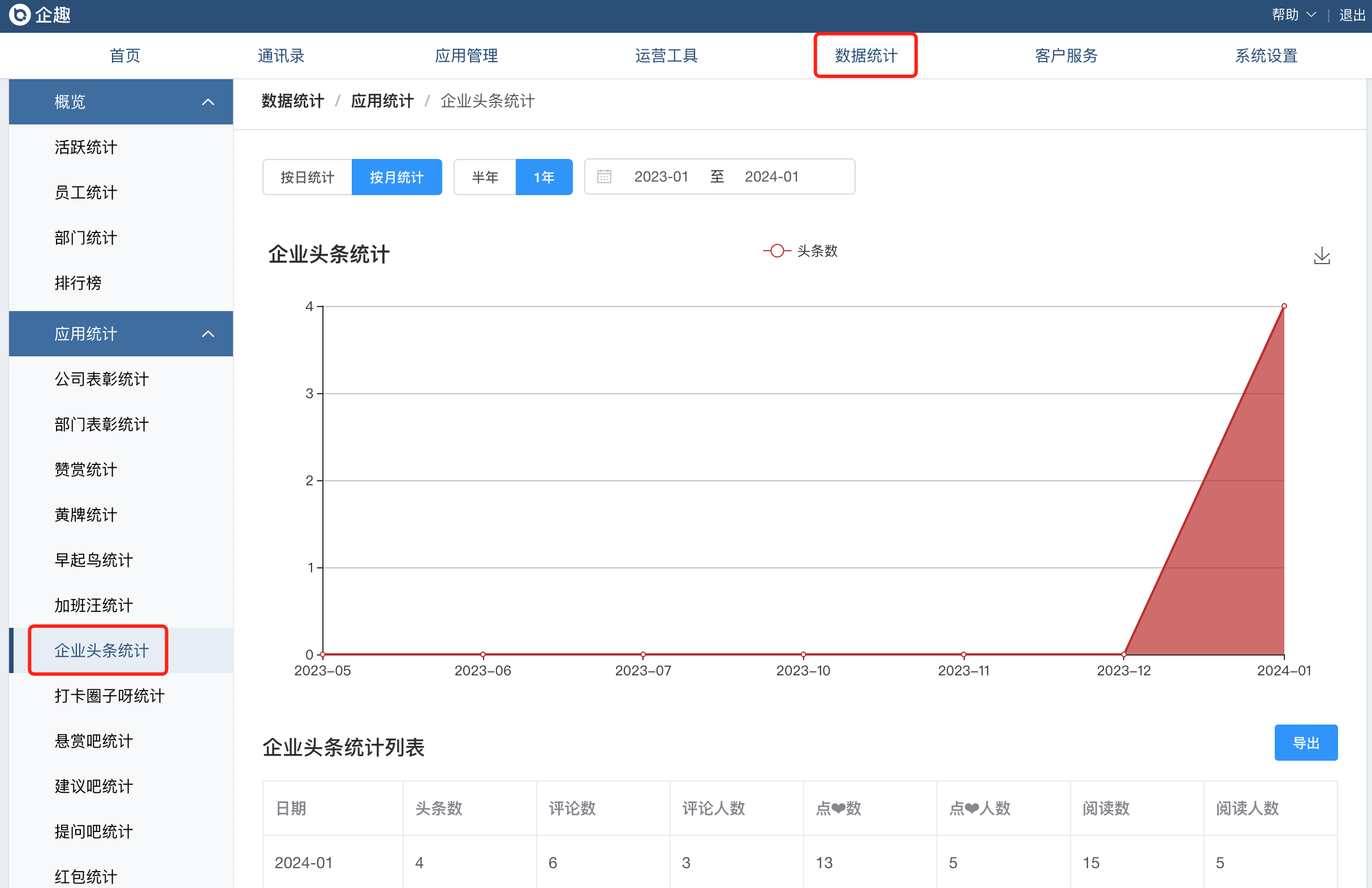 ④数据统计增加企业头条统计;