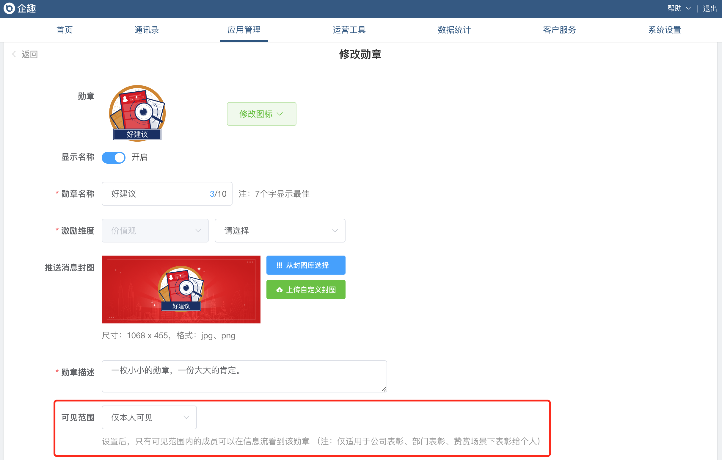 ①勋章支持设置可见范围;