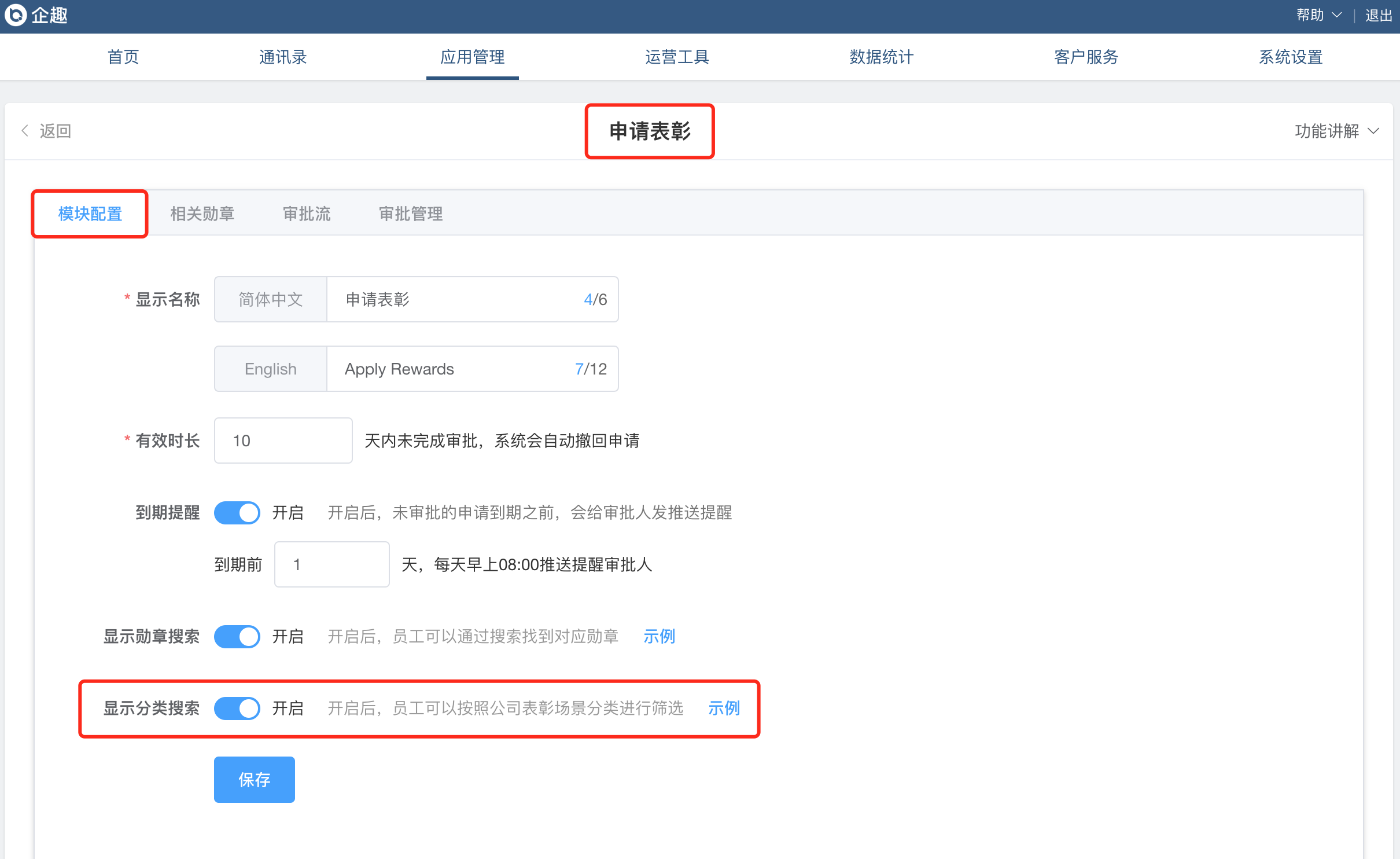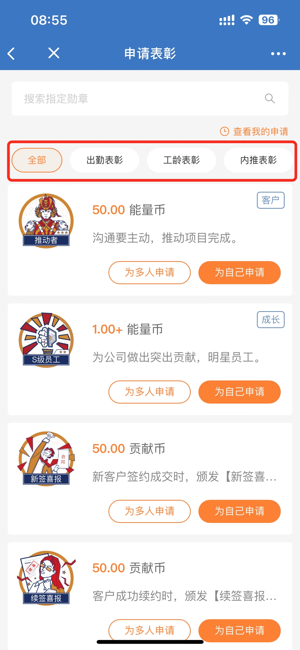 ③申请表彰增加按照公司表彰场景分类筛选;