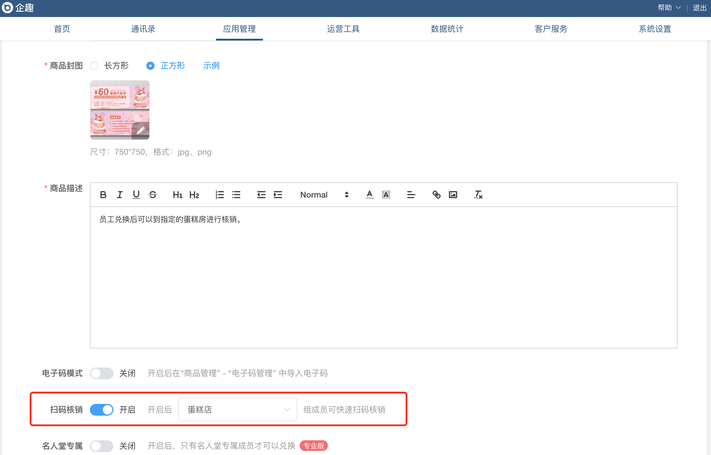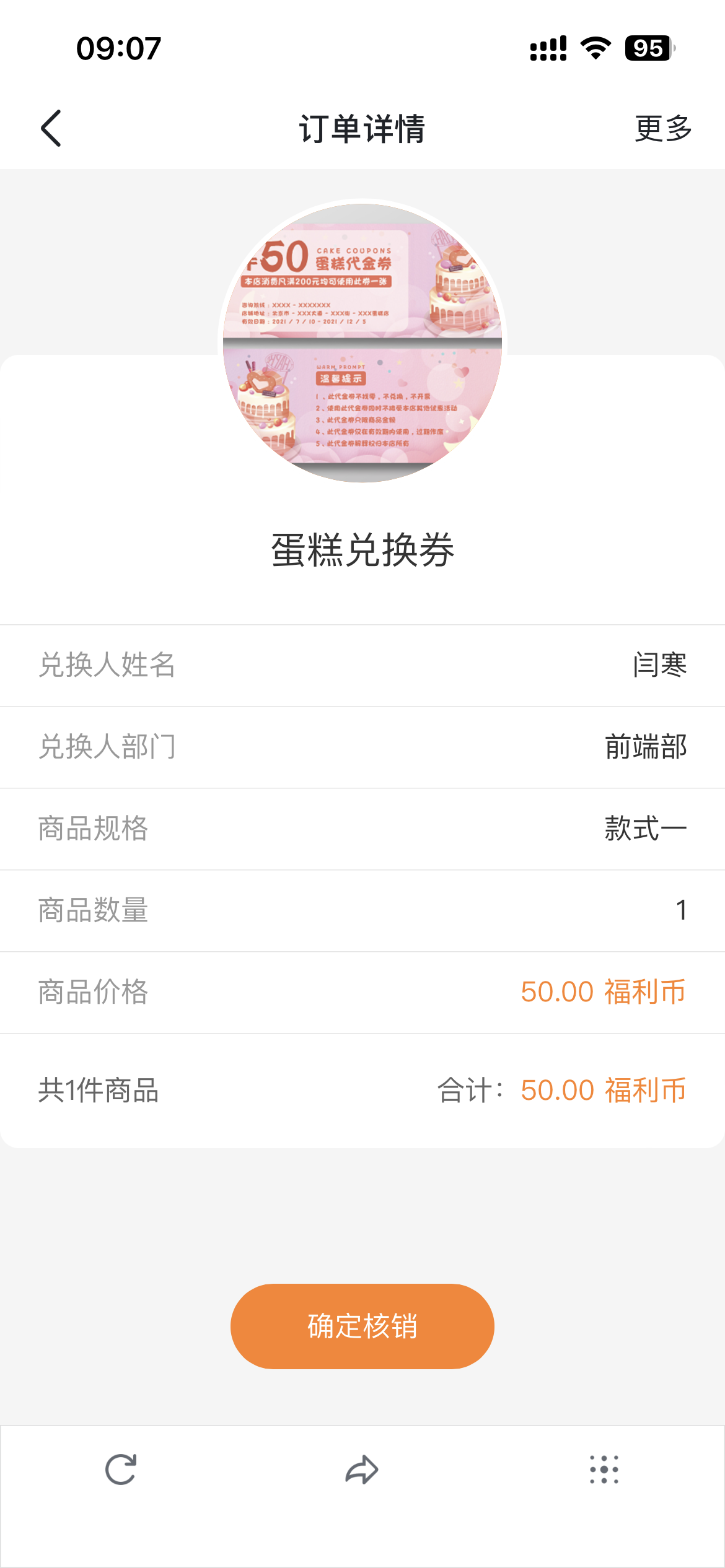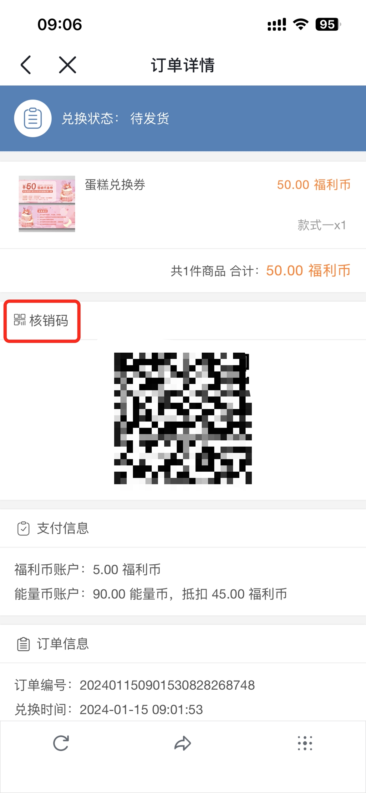 ⑤兑换订单生成核销二维码
