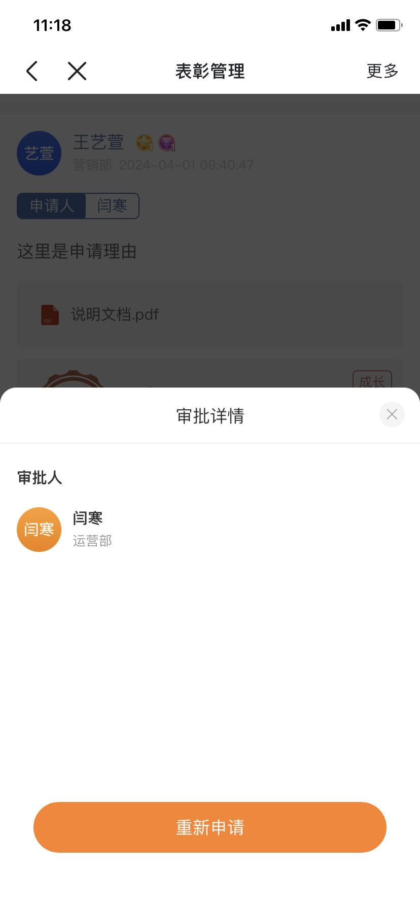 ①申请表彰被驳回后支持重新申请;