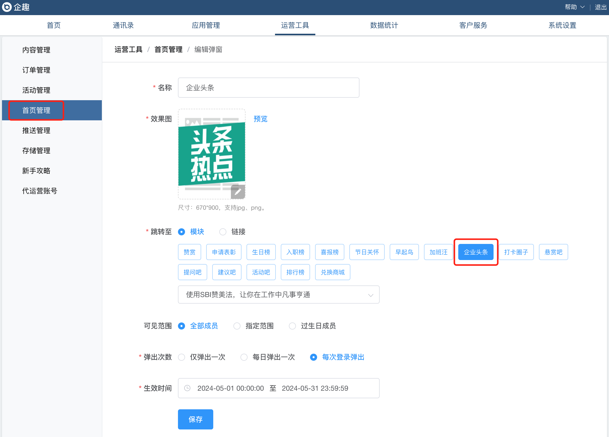 ①首页弹窗支持跳转到企业头条文章;
