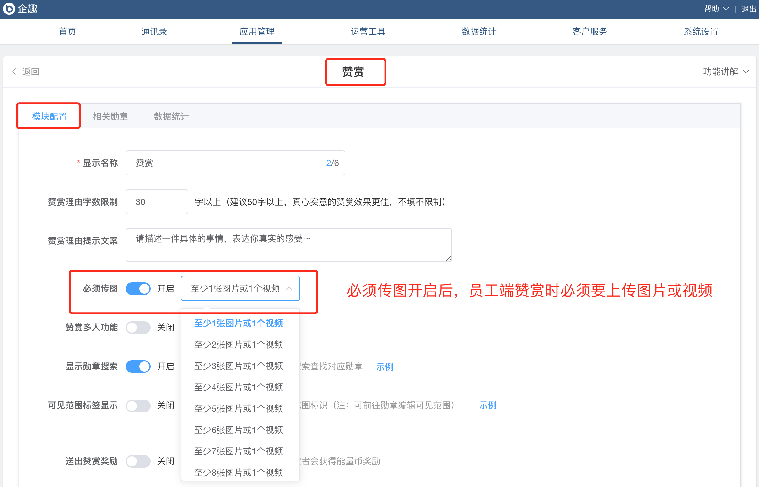 赞赏增加必须上传图片/视频配置项