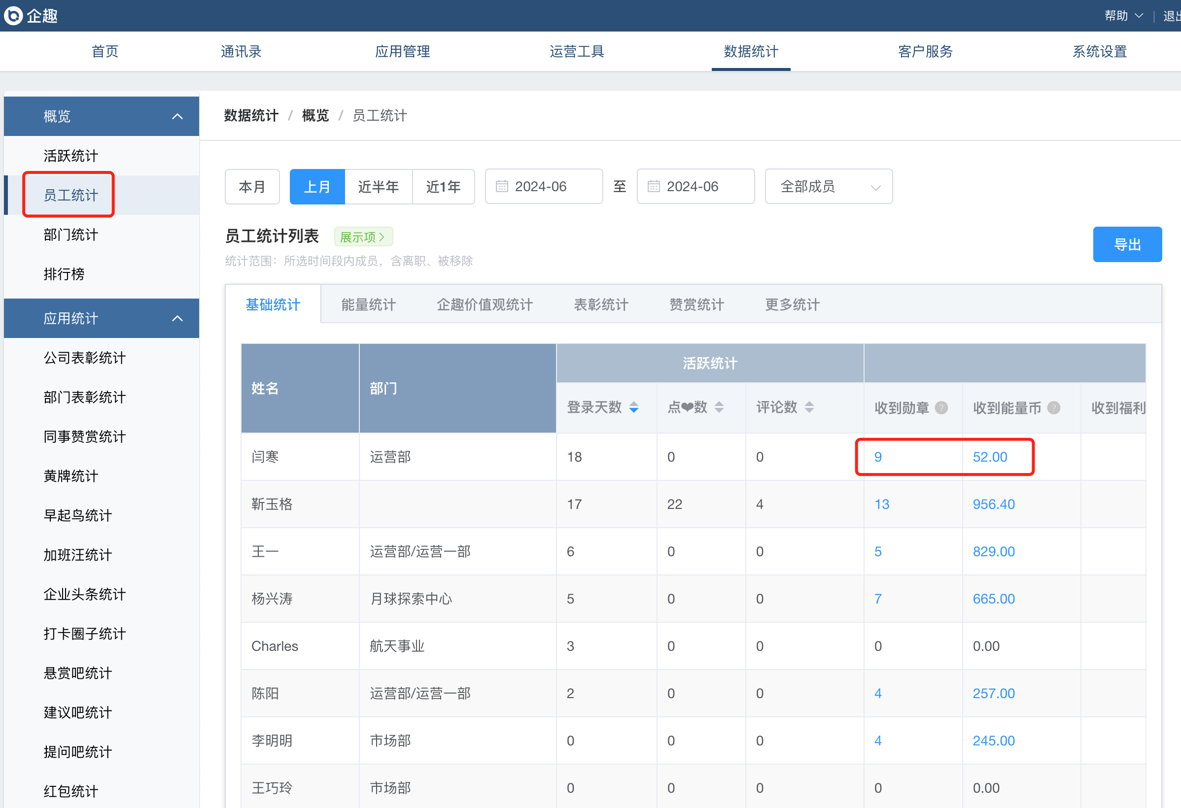 ③员工统计相关数据支持穿透到明细页面;