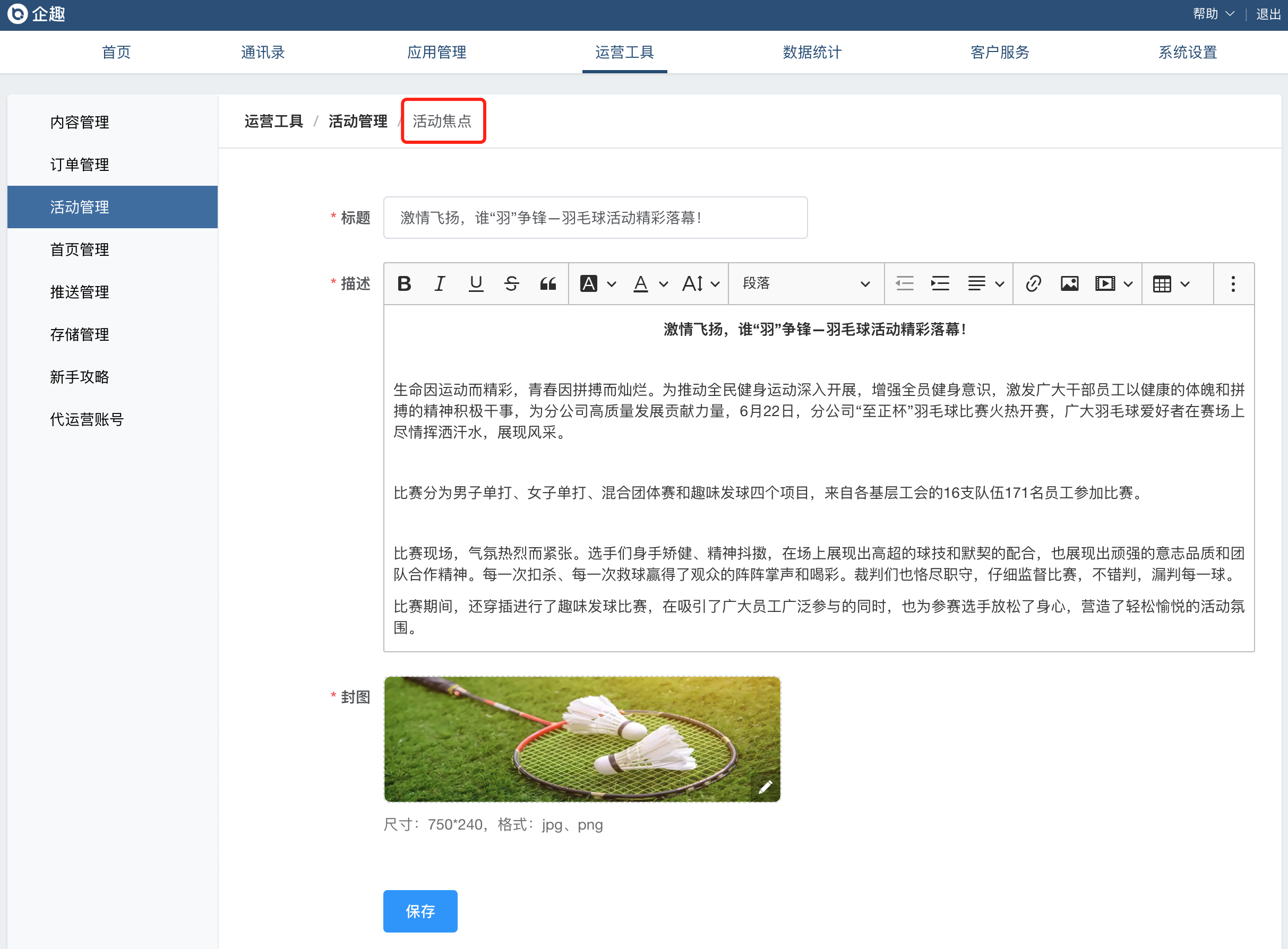 ④活动吧增加活动焦点功能