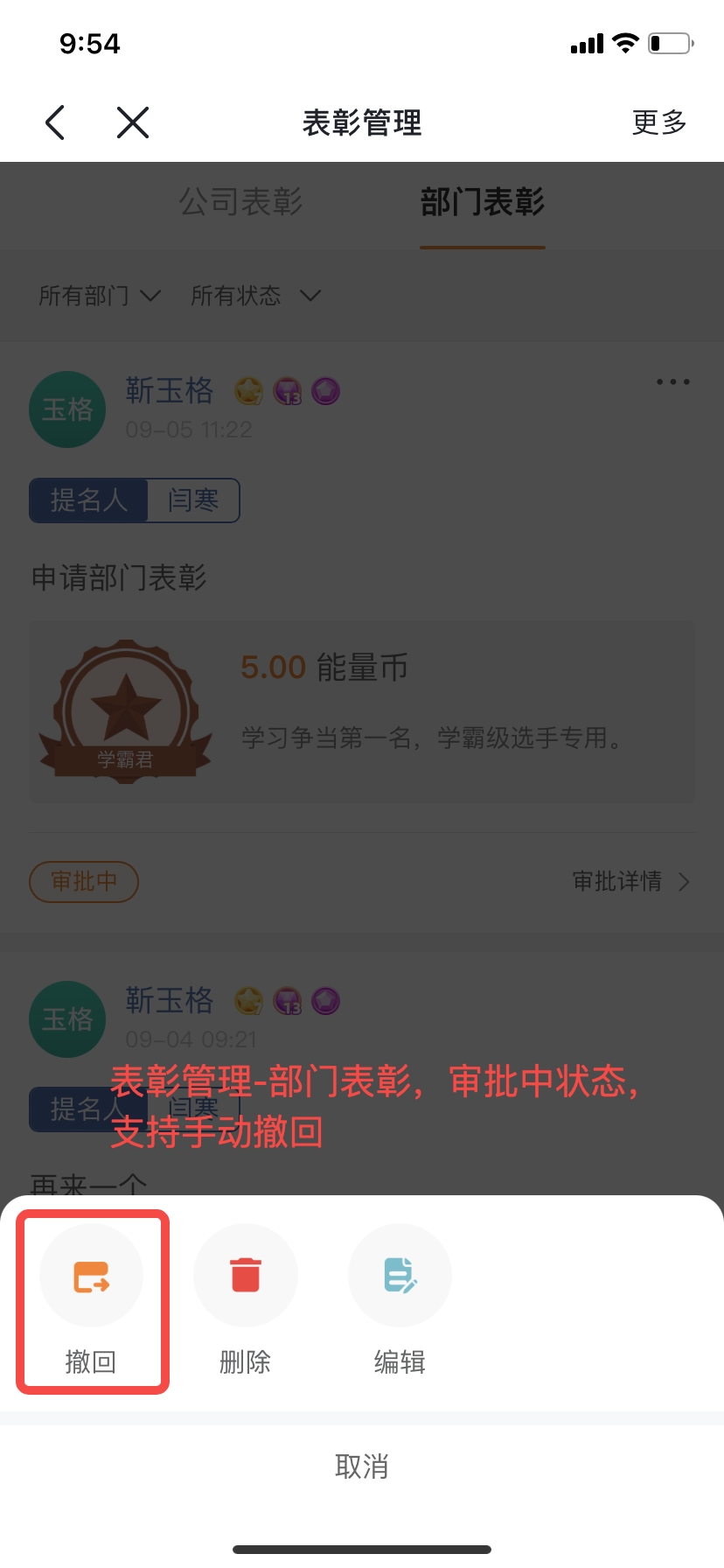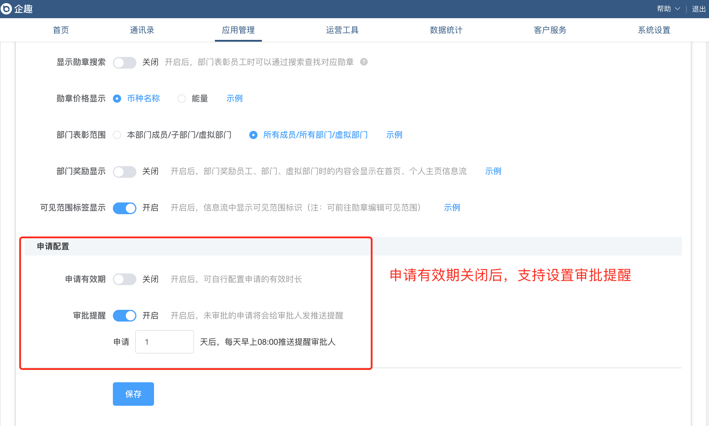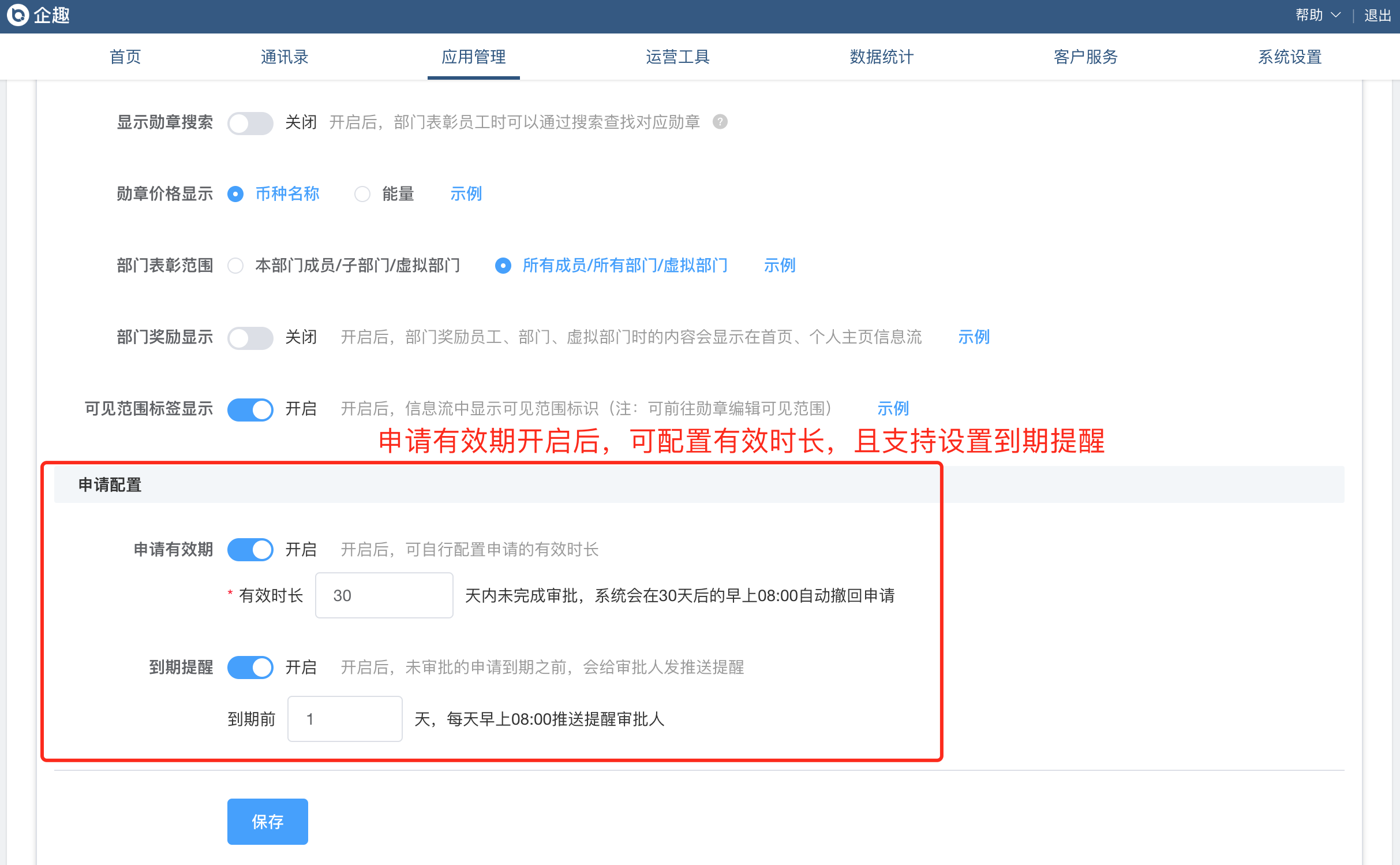 ③申请部门表彰增加到期提醒功能
