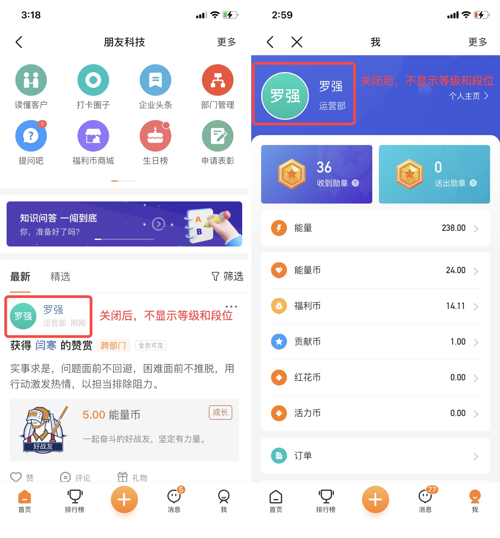 等级、段位模块支持关闭