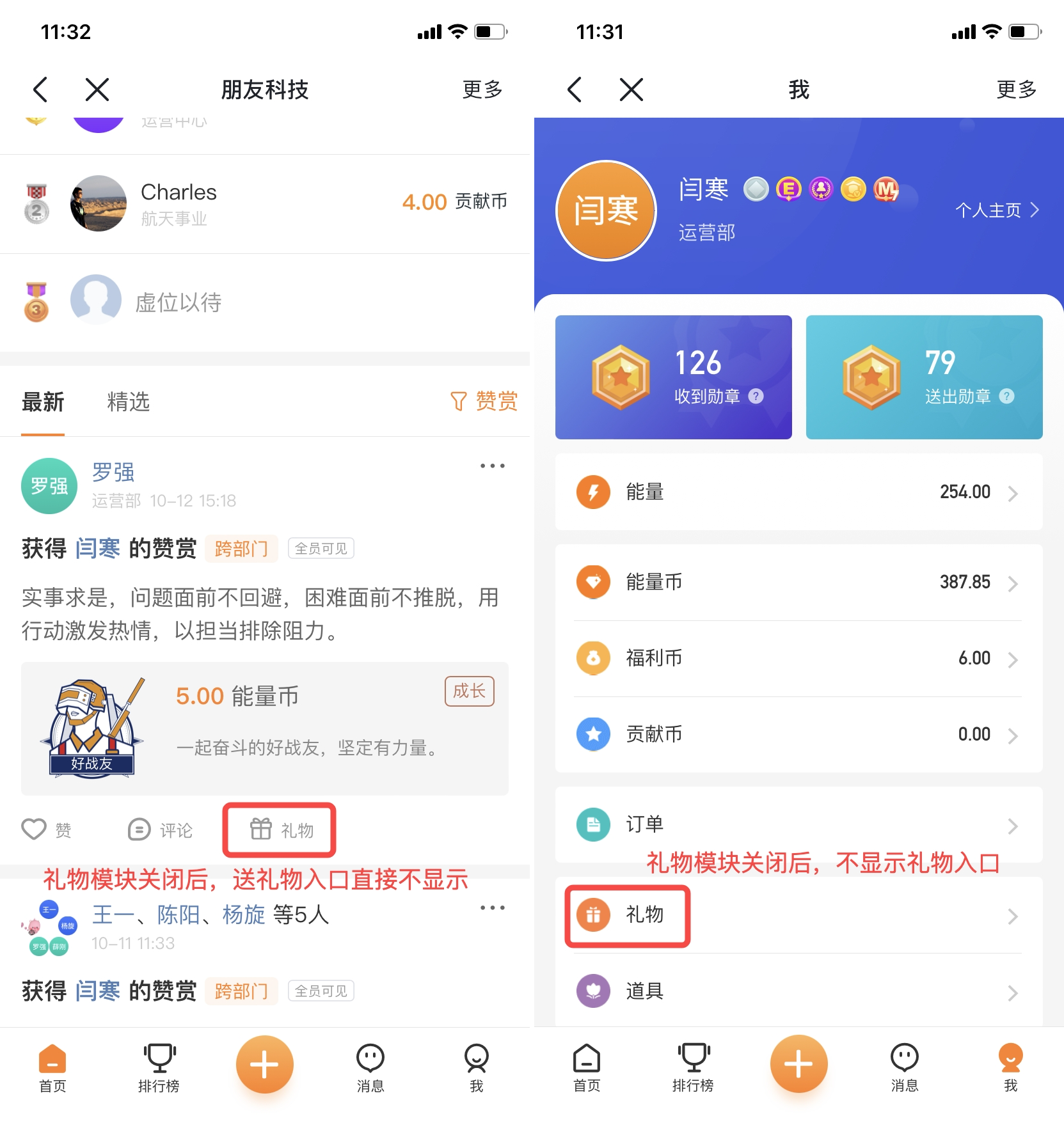 ①礼物模块支持关闭;