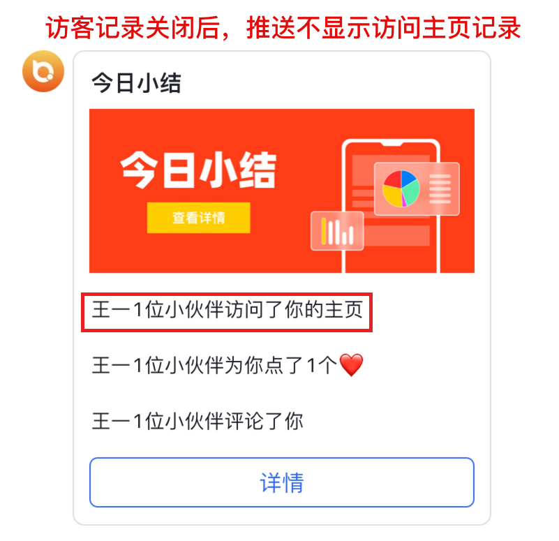 访客记录关闭后,每日小结推送内容不显示个人主页访问记录