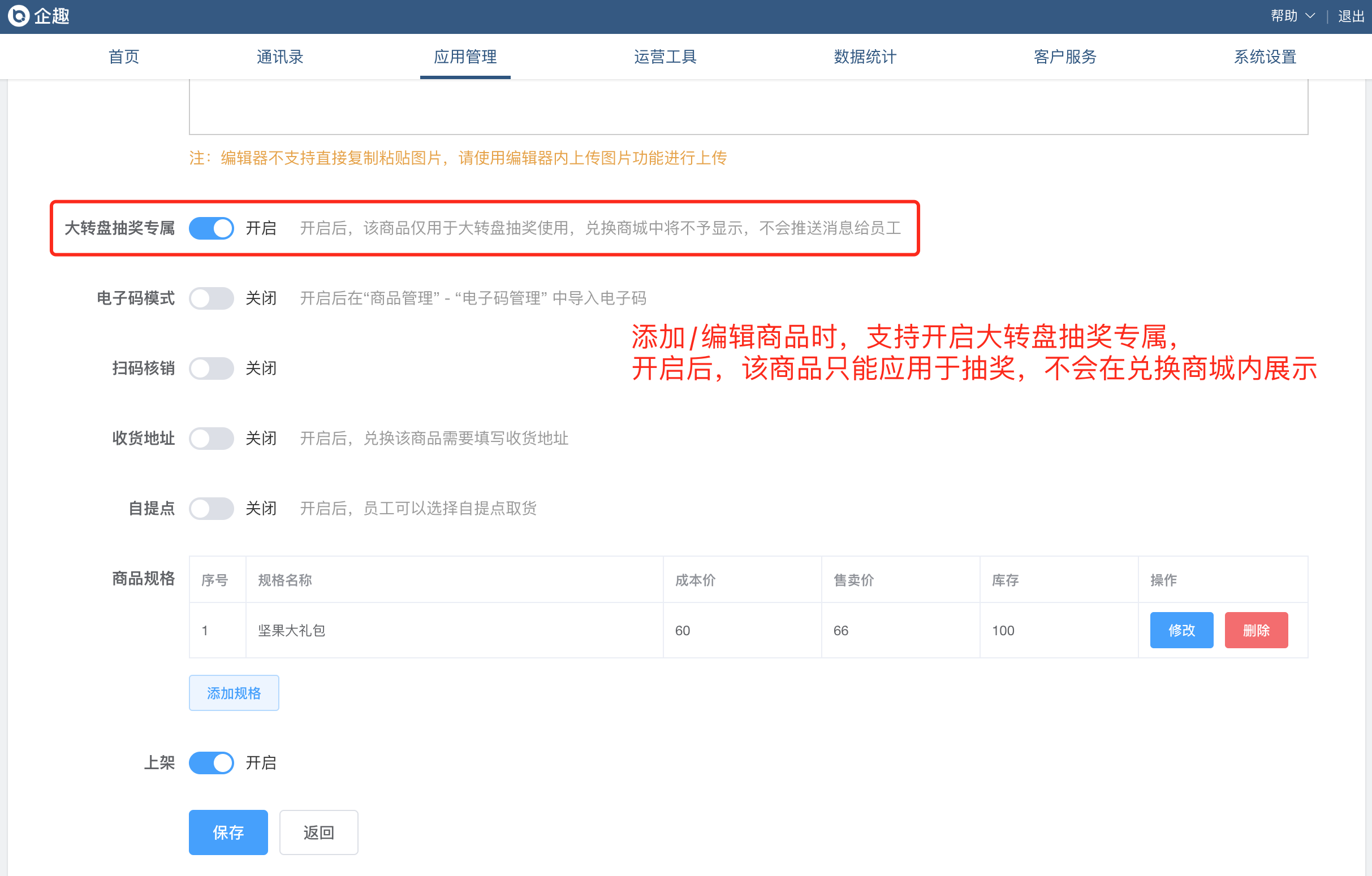 商品支持开启大转盘抽奖专属