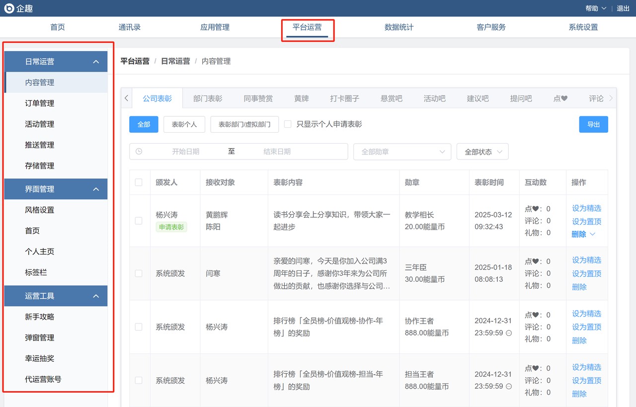 原「运营工具」调整为「平台运营」,分为日常运营、界面管理、运营工具