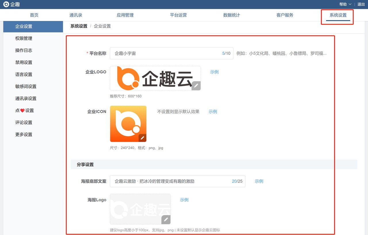 原「企业设置」相关内容调整到「系统设置」中