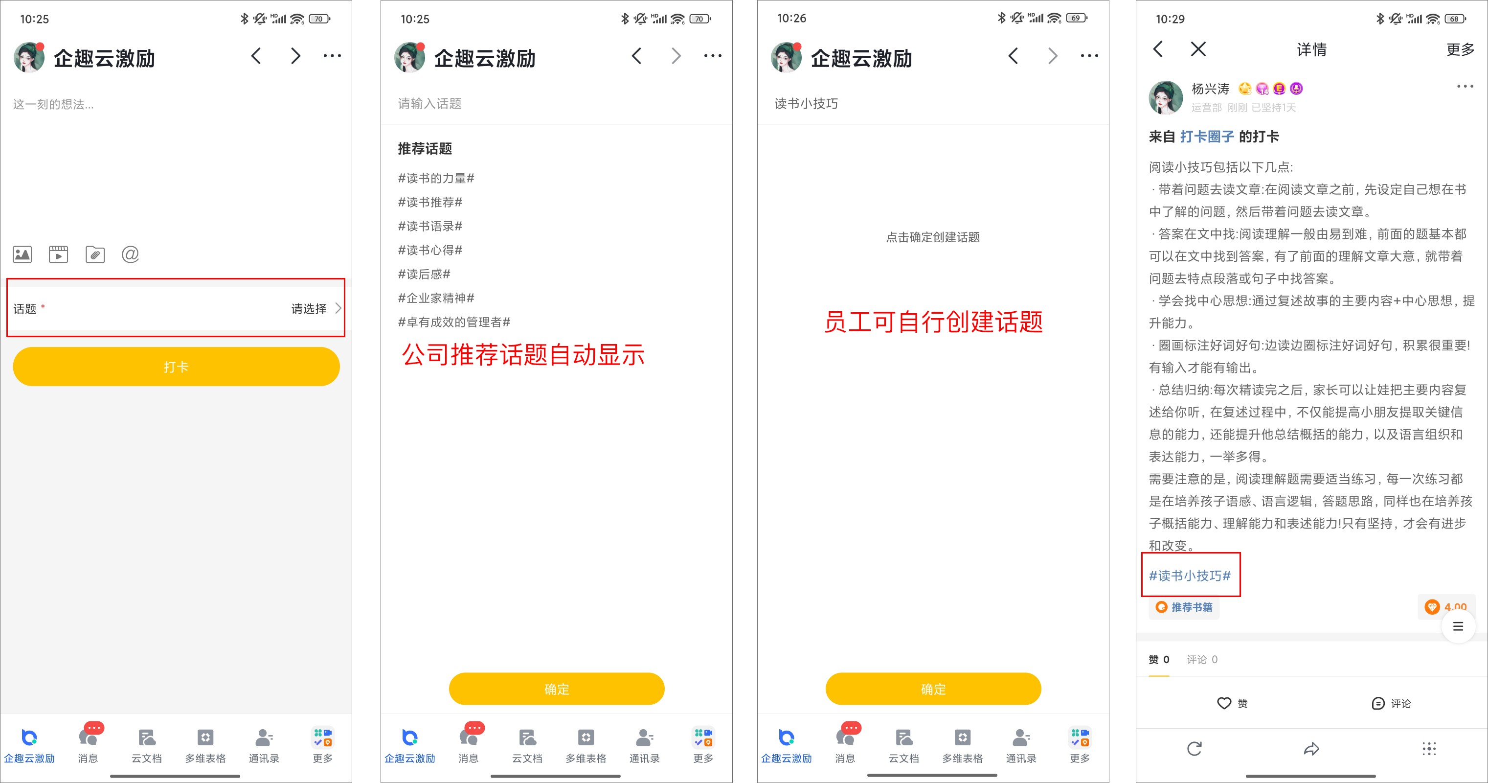 ①打卡圈子支持员工创建话题