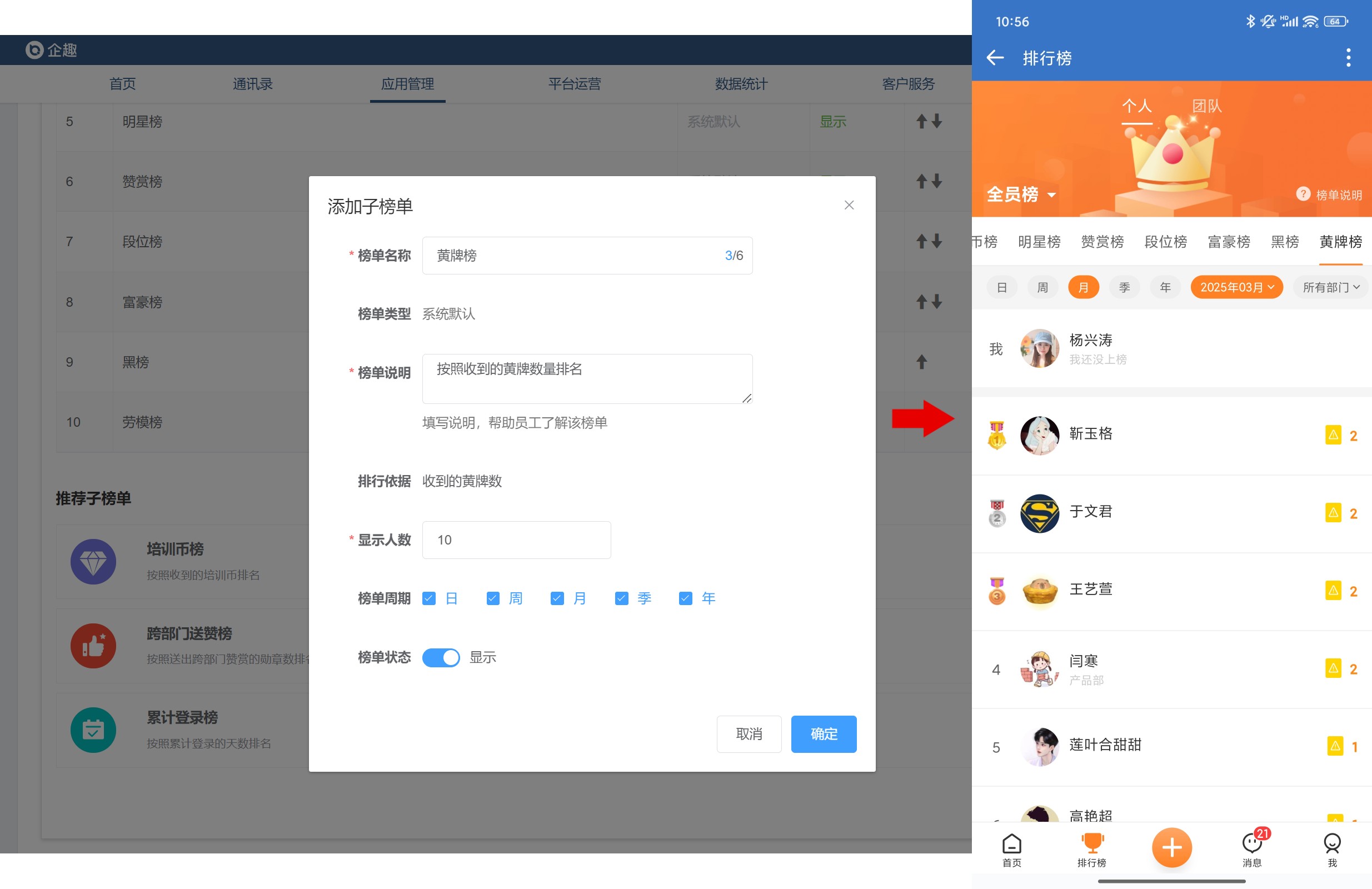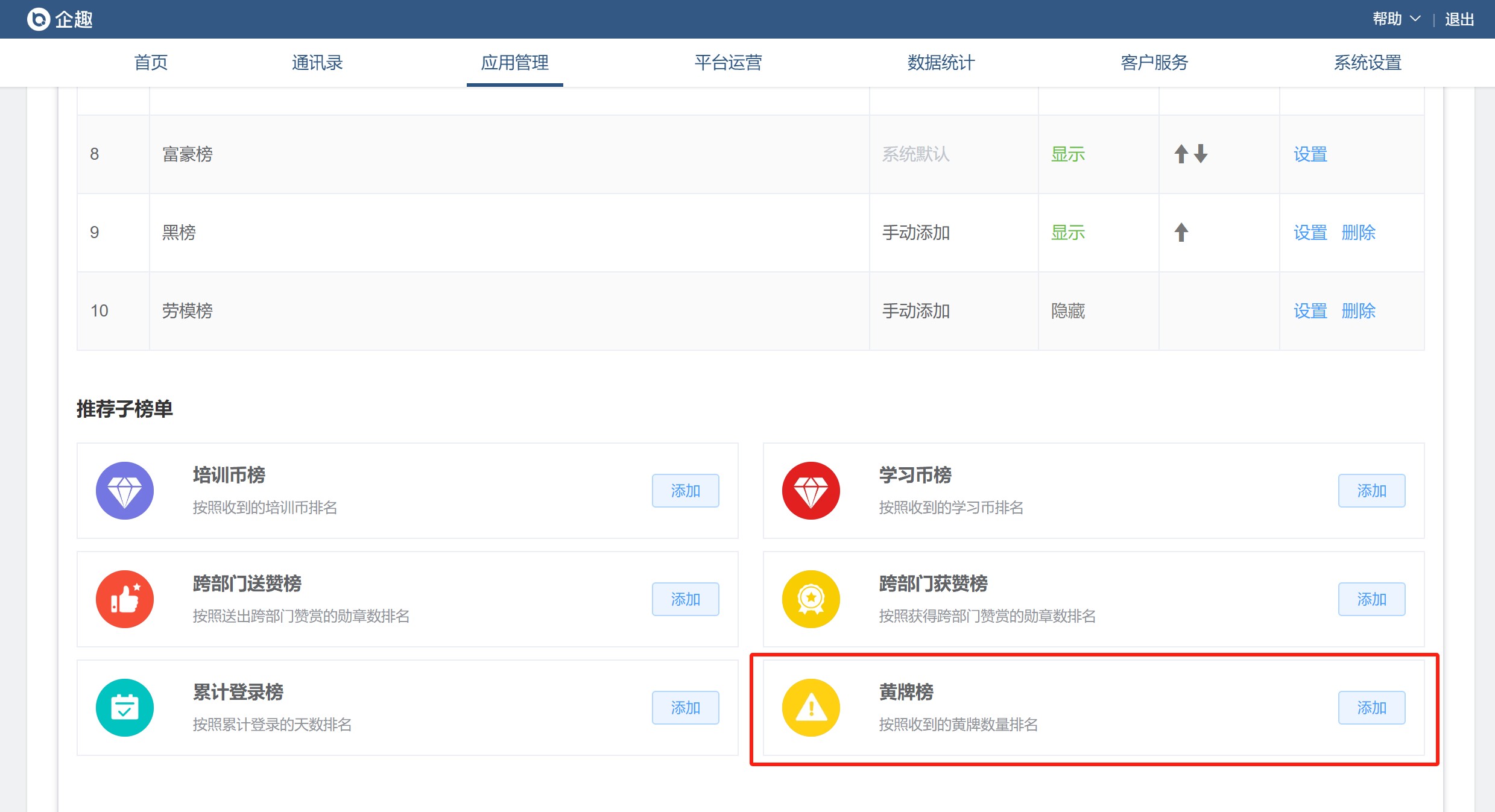 ③排行榜推荐榜单增加黄牌榜