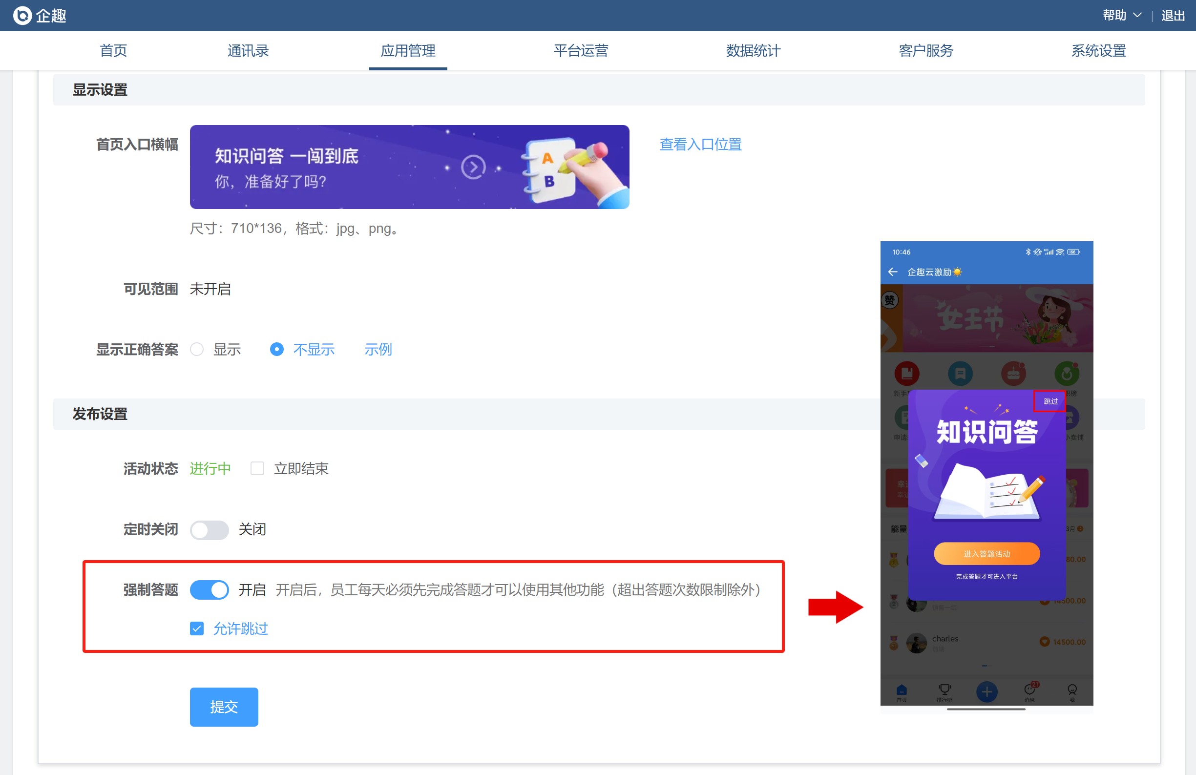 ②答题吧强制答题可设置允许跳过
