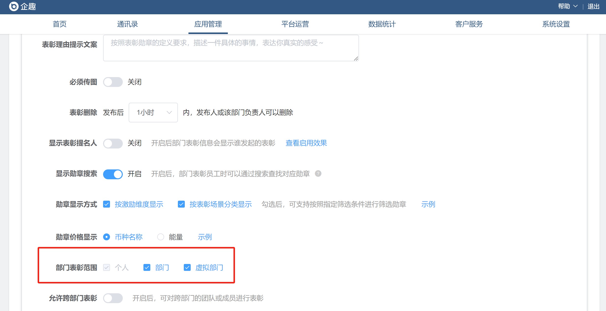 ④部门表彰范围设置交互优化