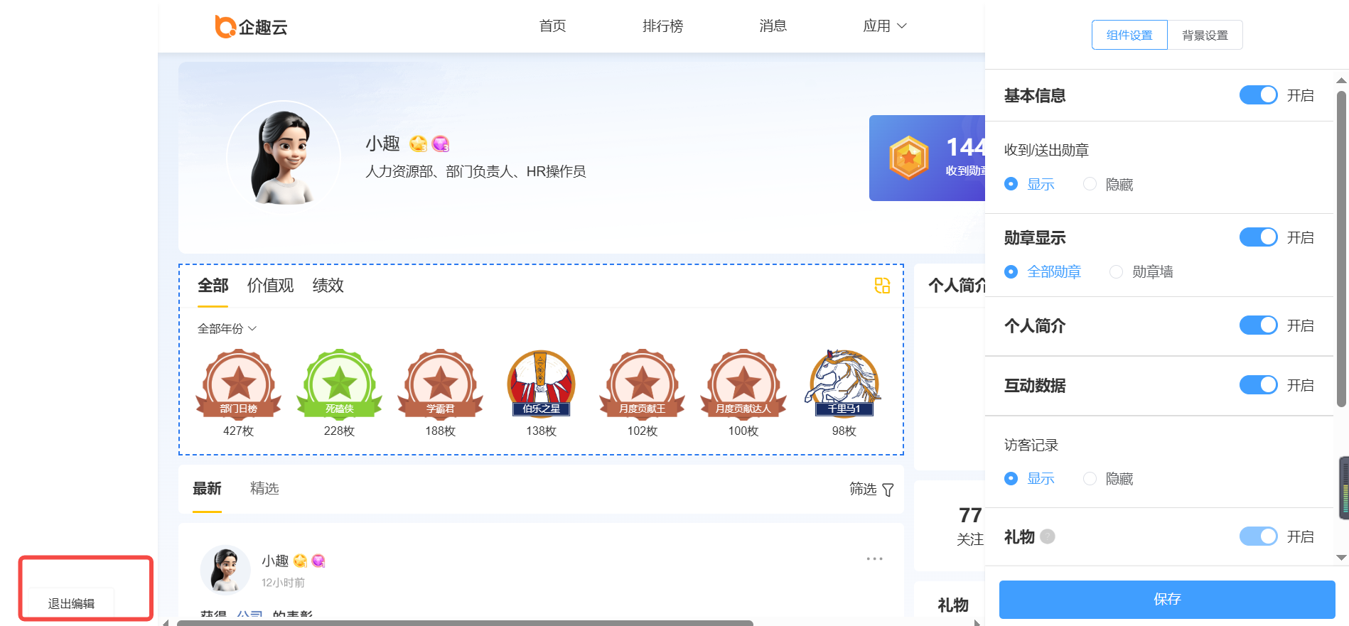 ⑫ 个人主页装修中“退出编辑”按钮优化