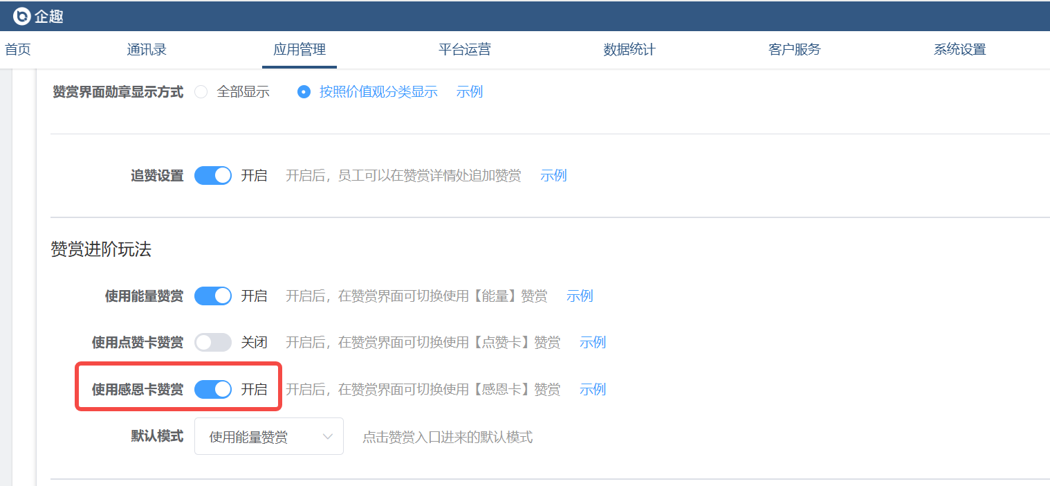 如果在感恩节活动启用感恩卡道具,赞赏模块会自动开启使用感恩卡赞赏功能。