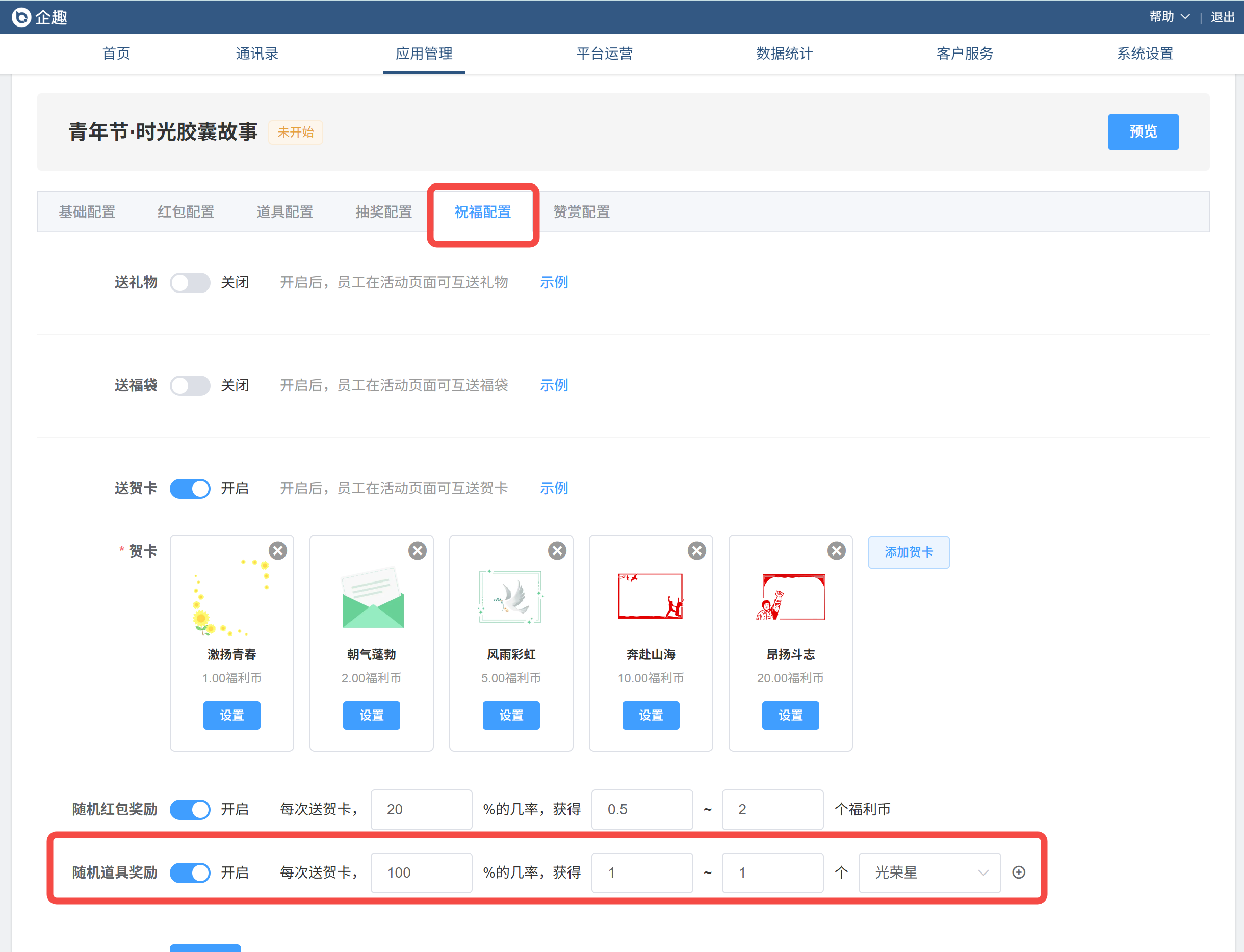 节日关怀活动中,发出祝福就有一定的概率掉落抽奖道具,发出赞赏同样有一定概率掉落抽奖道具。