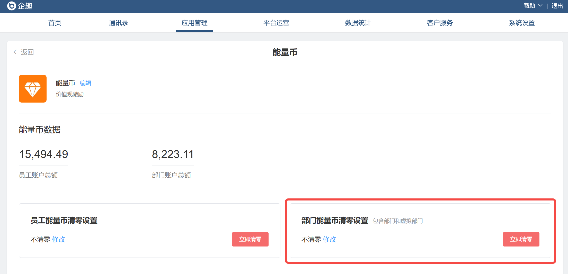 ⑥ 积分新增部门账户清零功能