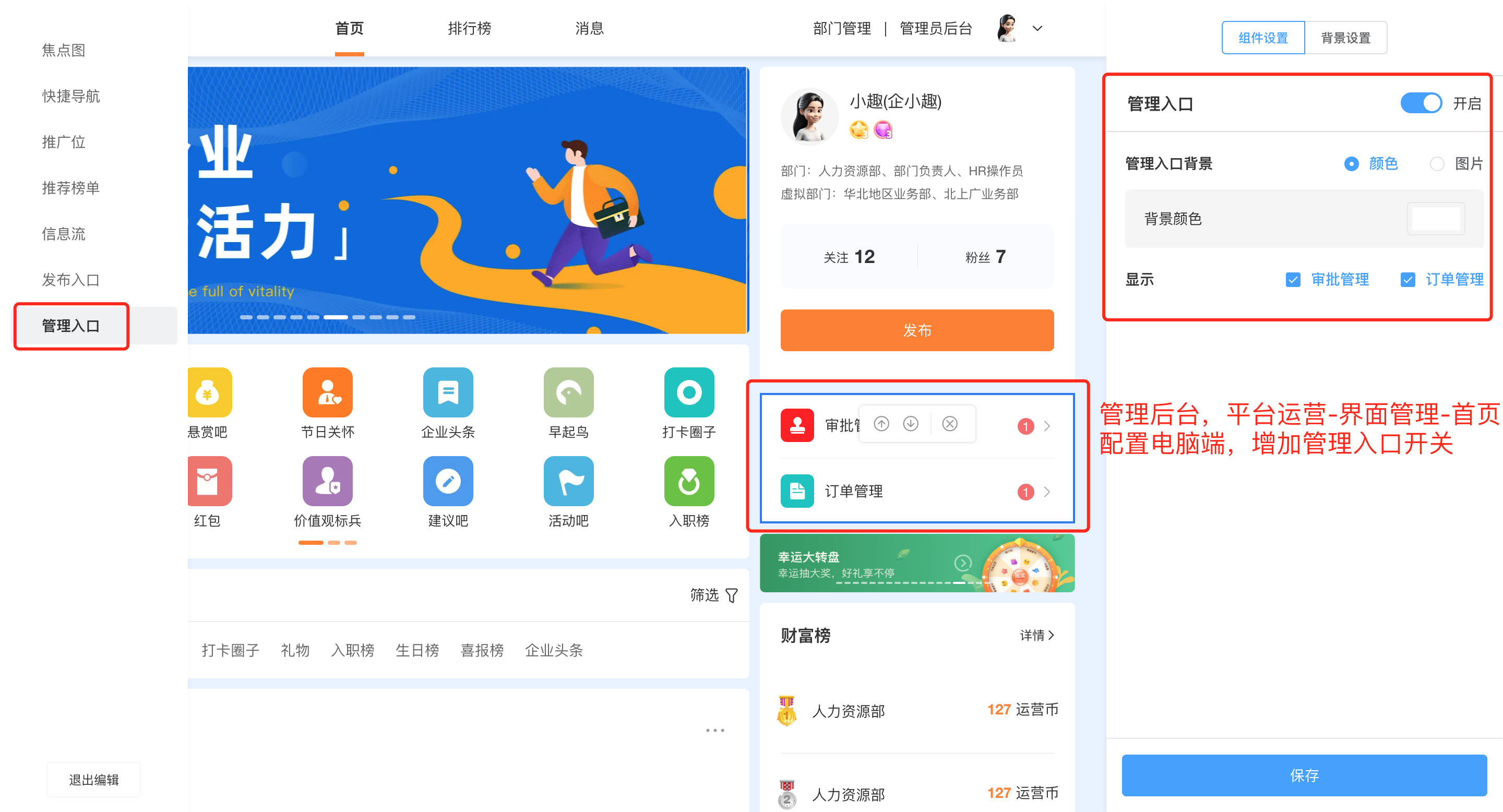 ③电脑端「首页」增加订单管理、审批管理入口