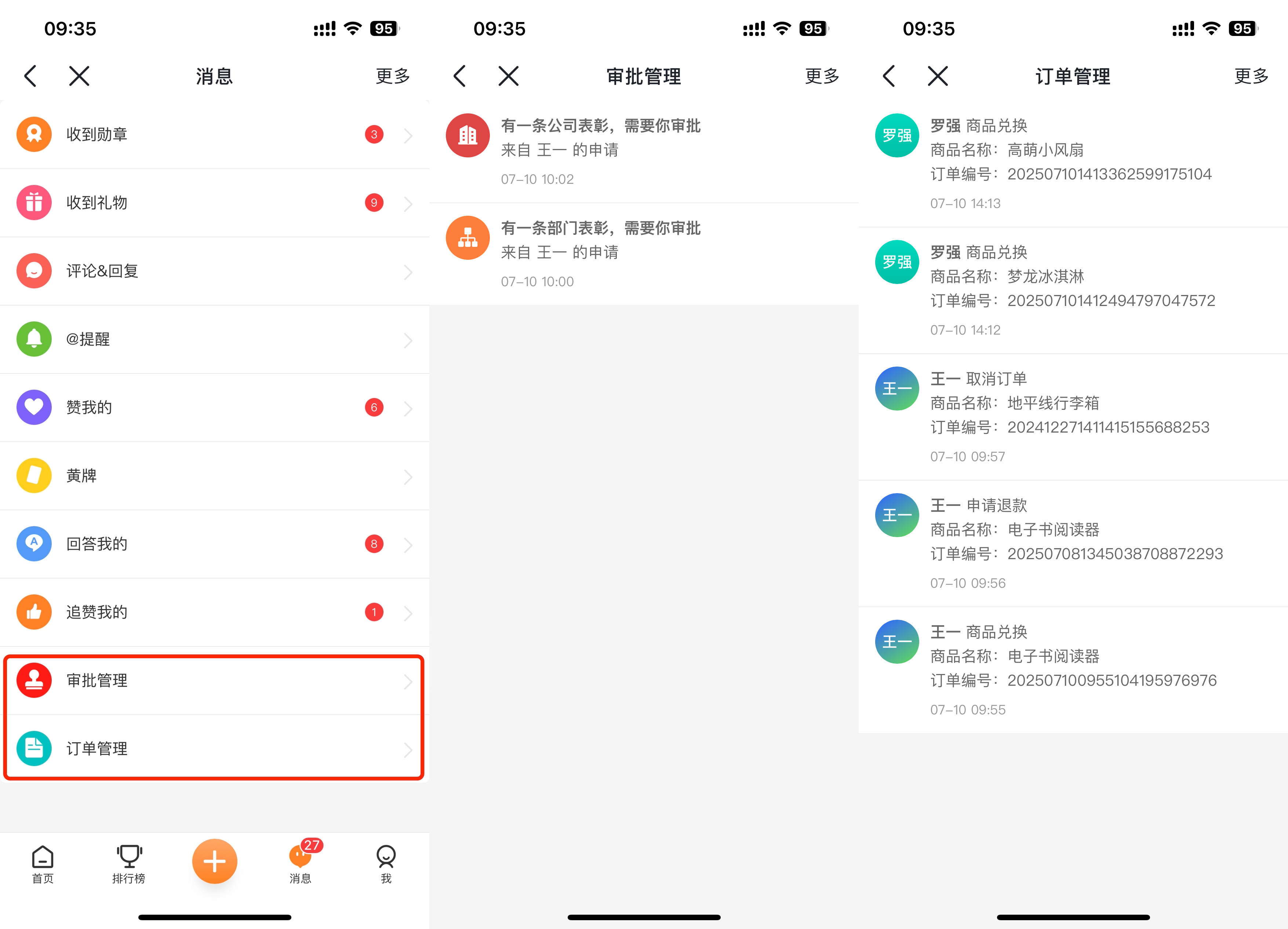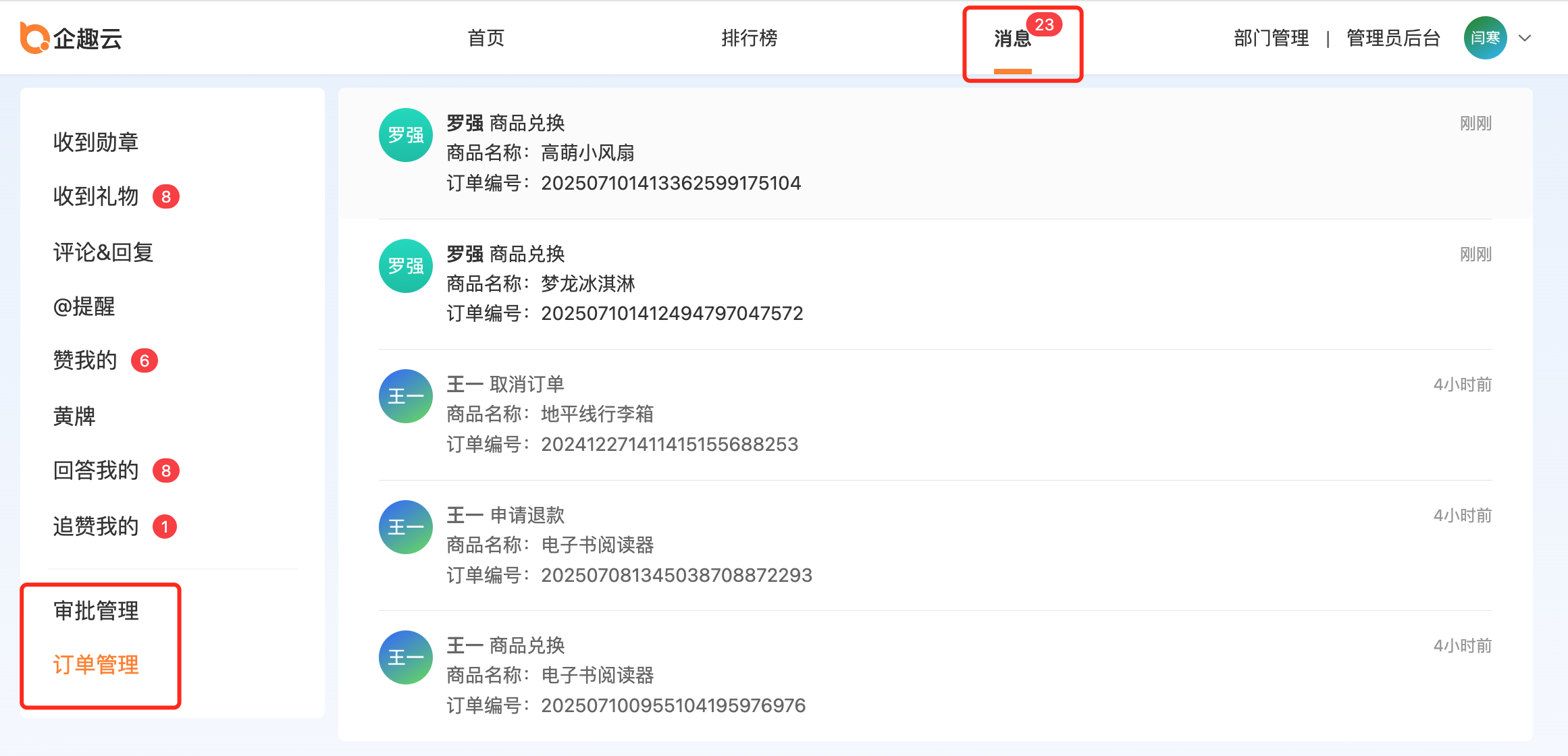 ④消息新增订单管理、审批管理通知