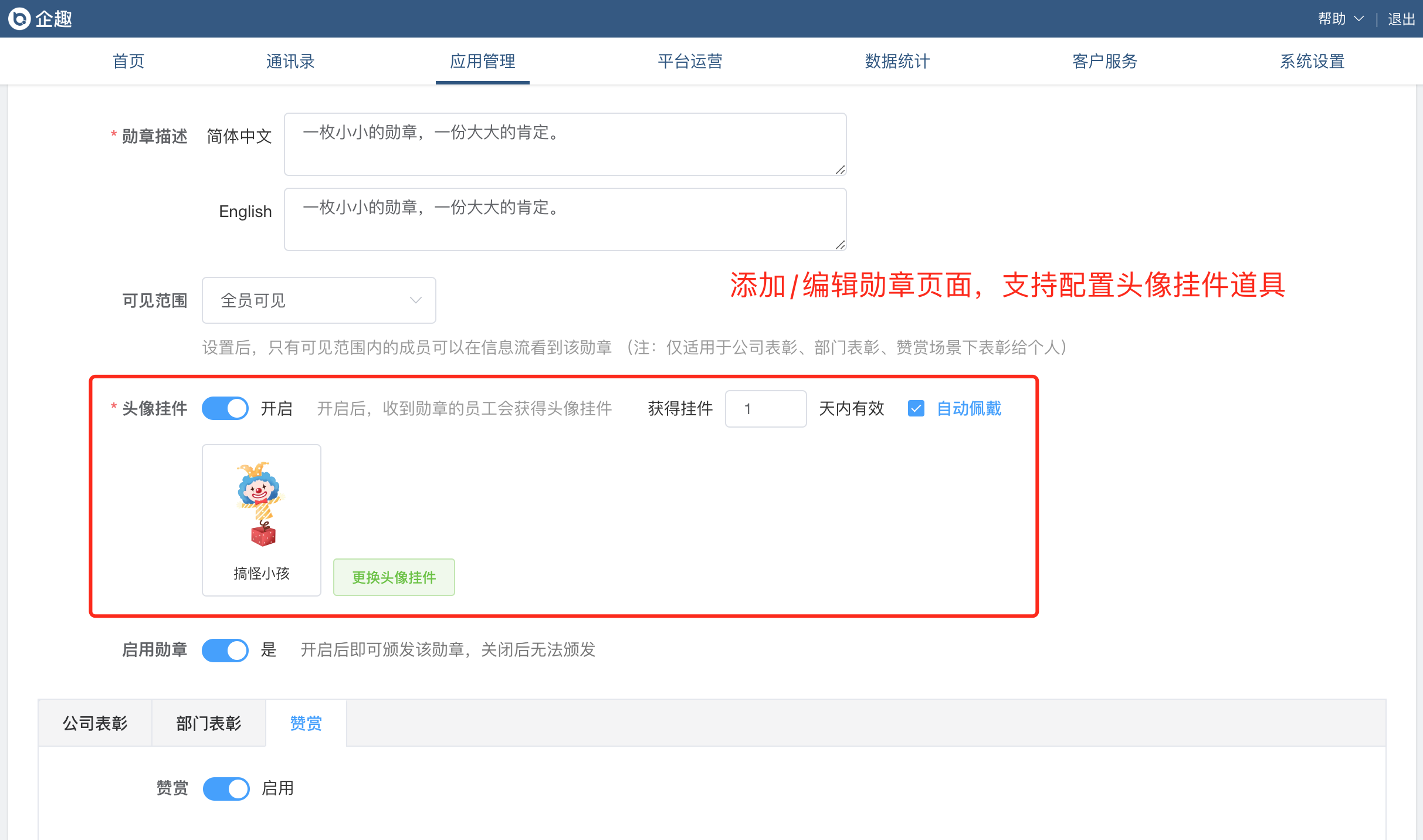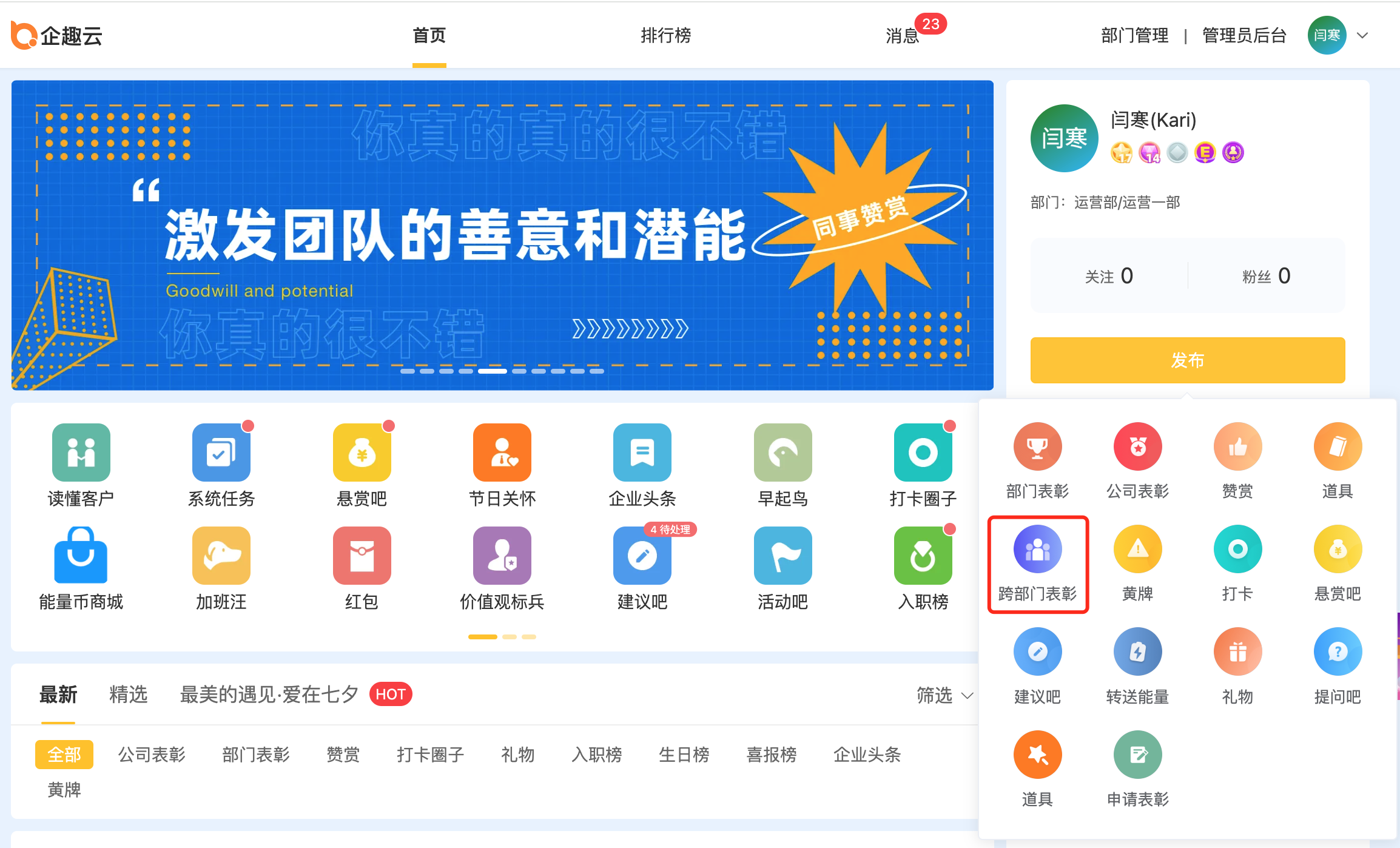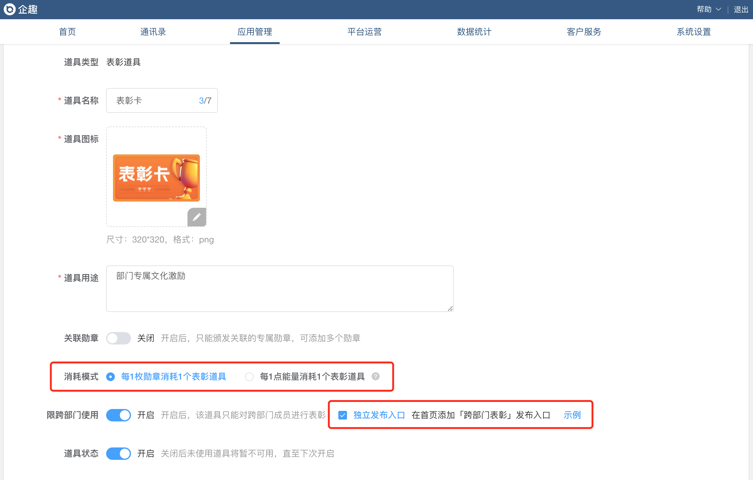 ⑦表彰道具支持两种消耗模式、增加跨部门表彰独立发布入口