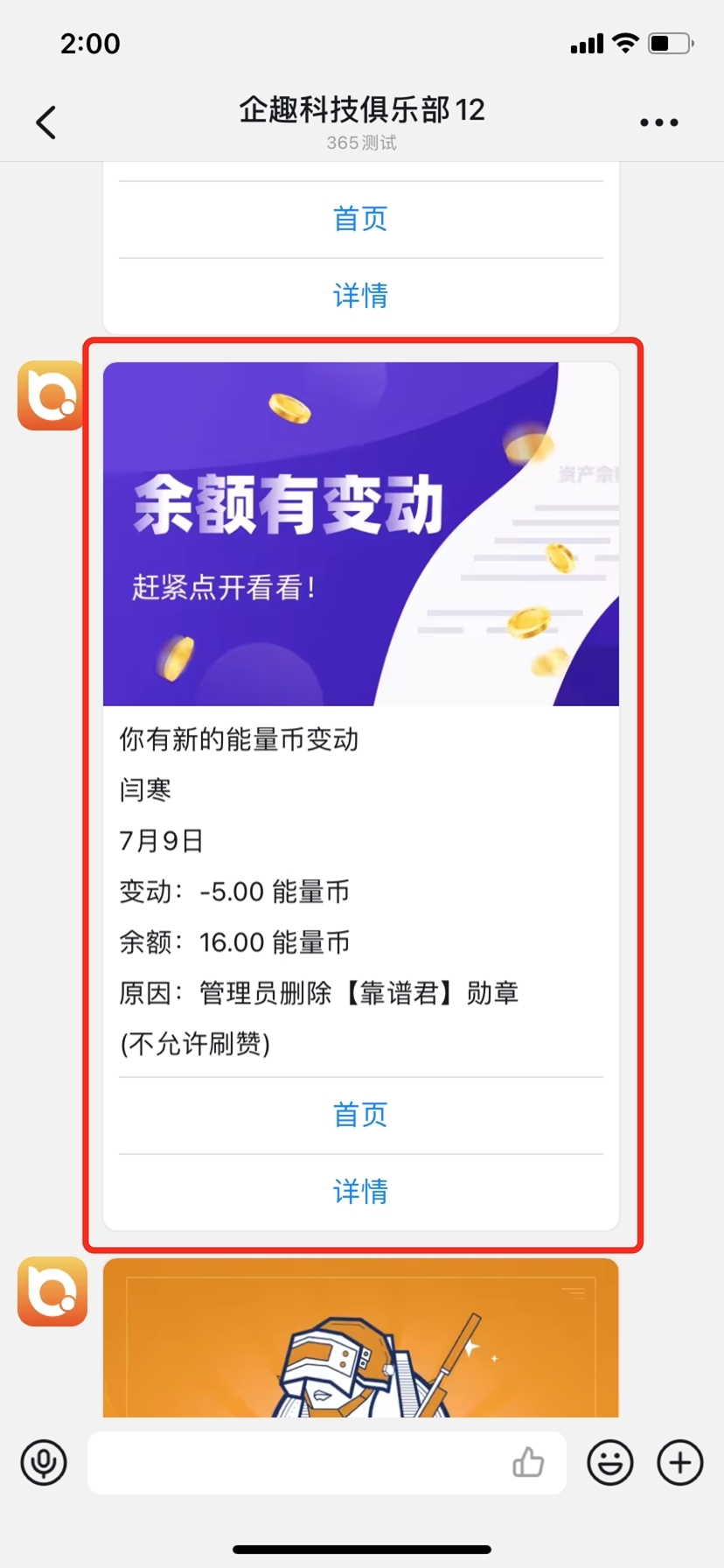 ⑤赞赏被删除,被赞赏人收到能量币变动提醒